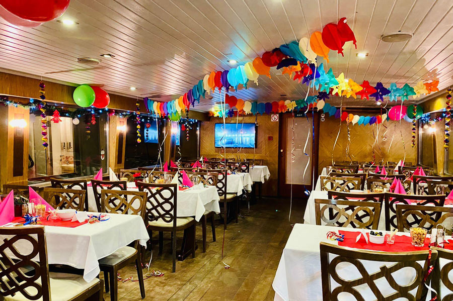 K dispozici je po dobu plavby zásobený nápojový bar a bohaté silvestrovské menu.